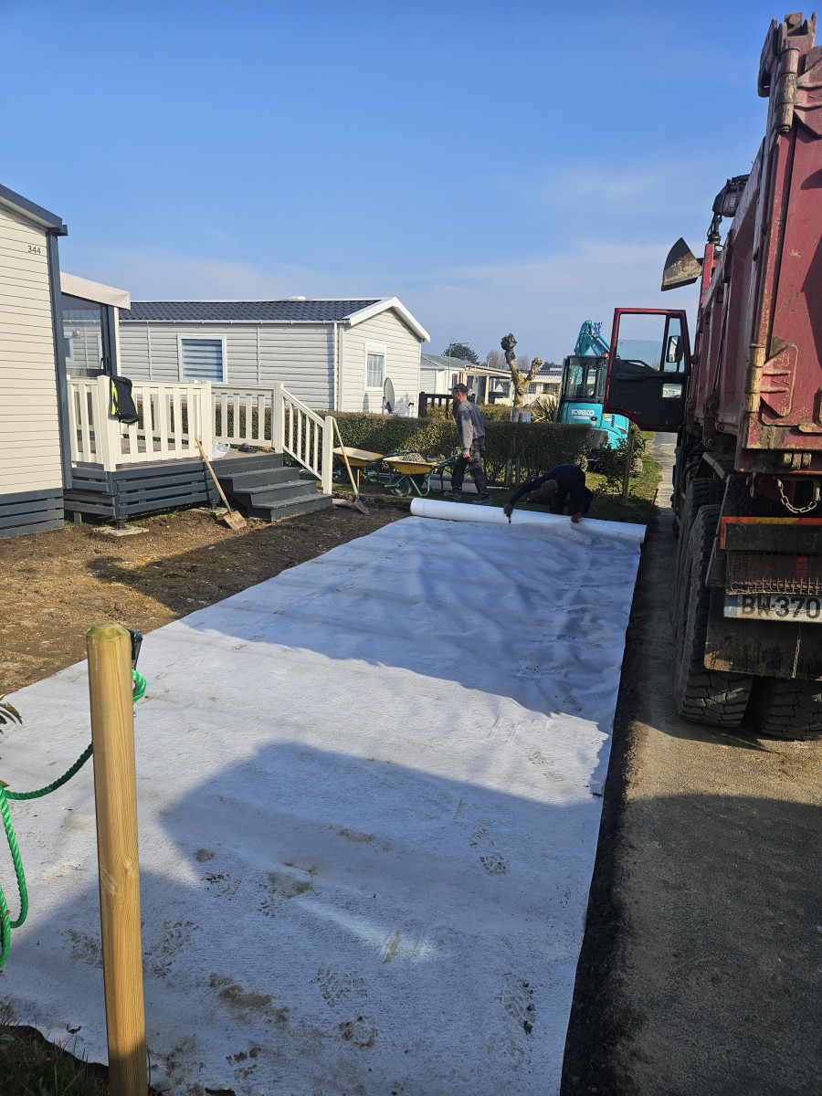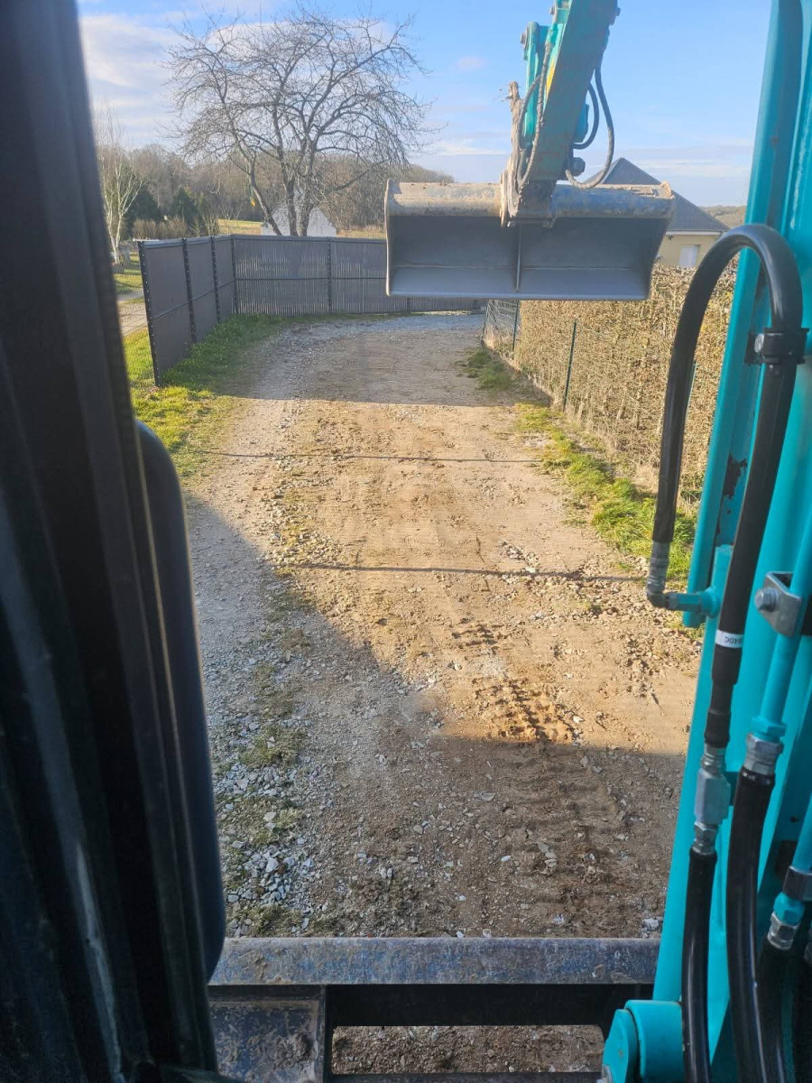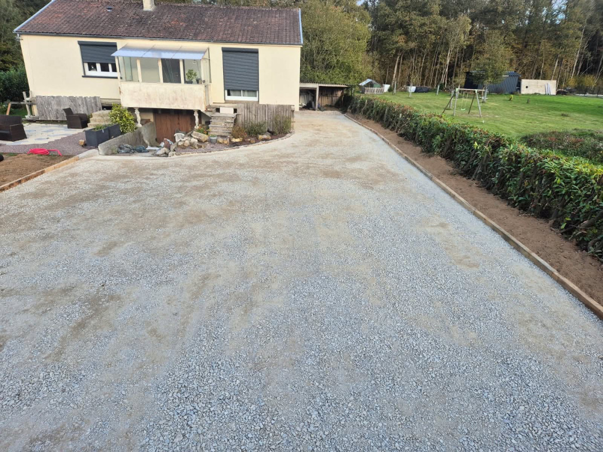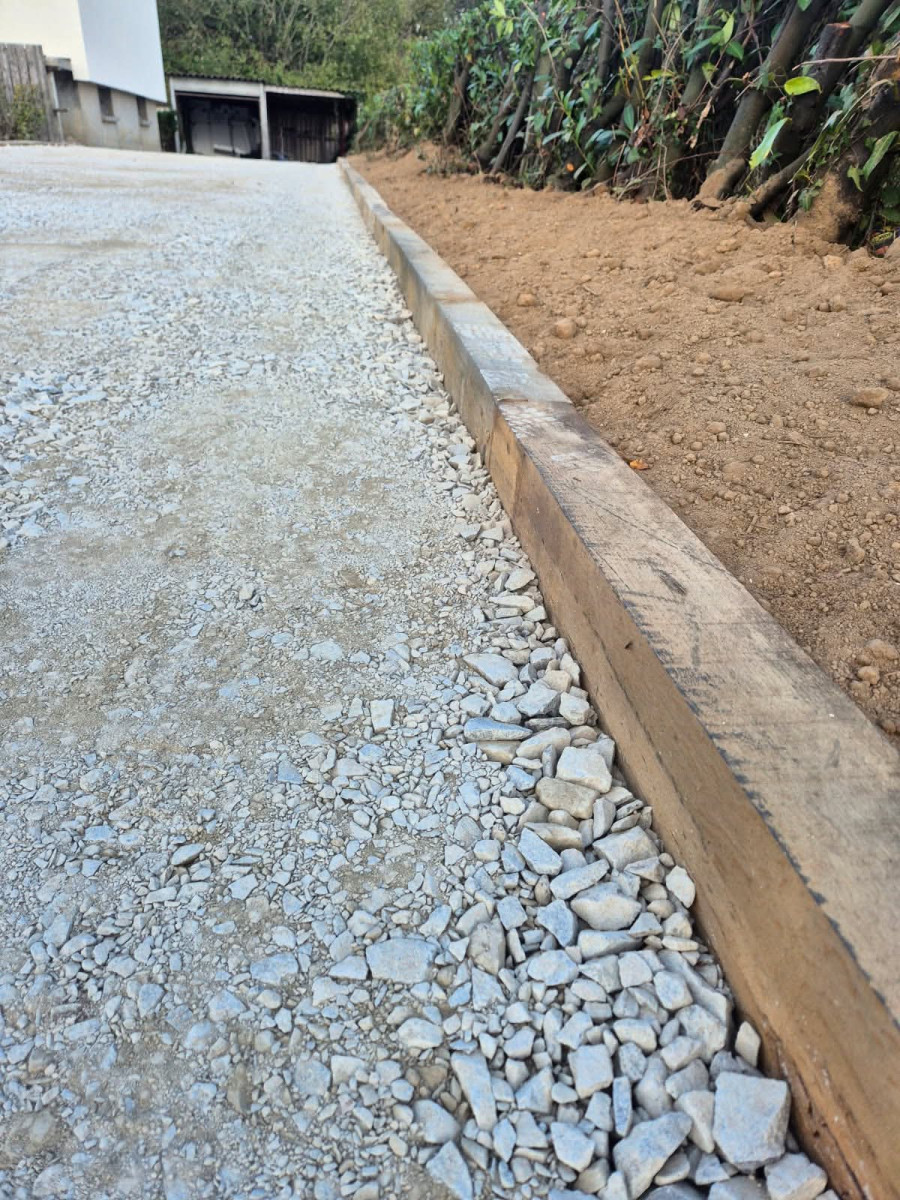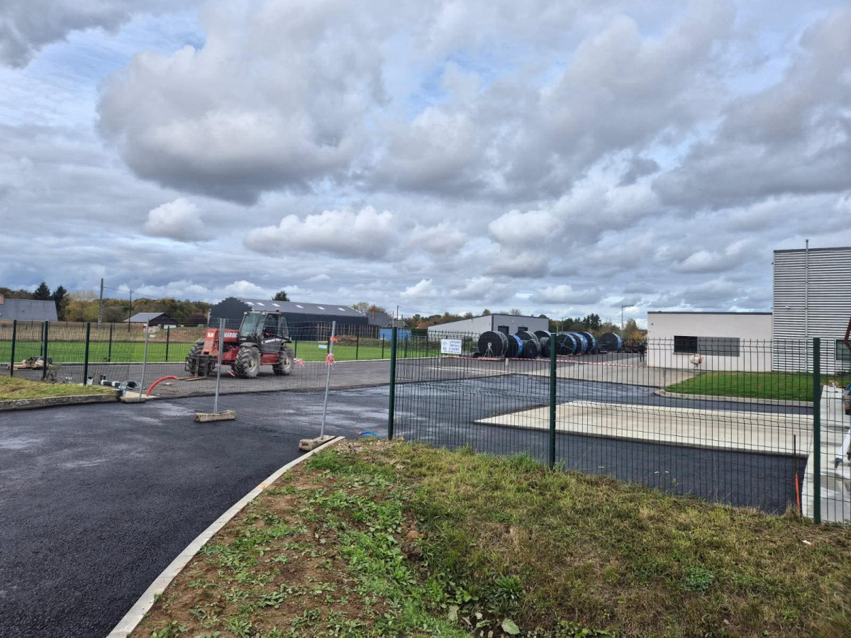 Agrandissement d'un parking entreprise, pose de bordures P1, finition enrobé. Chantier Bernay (27)