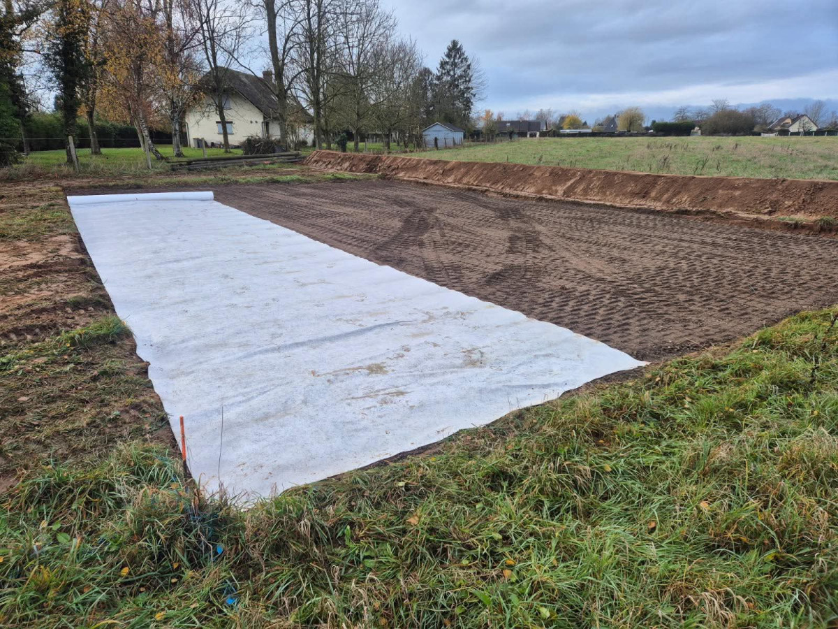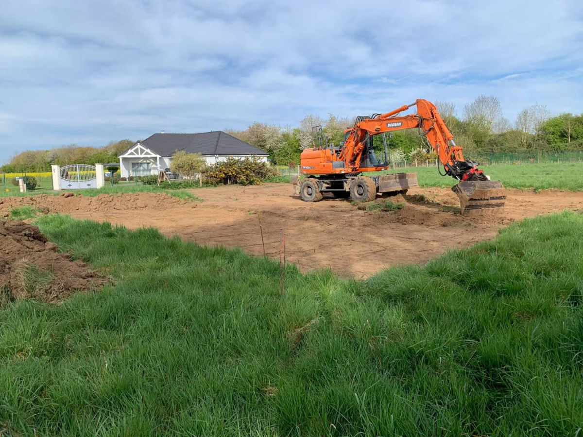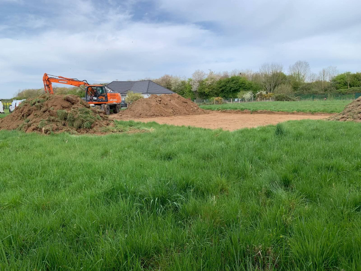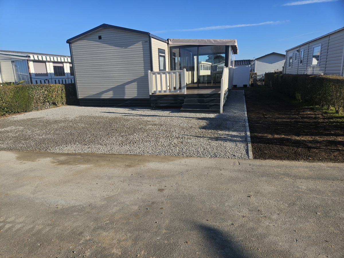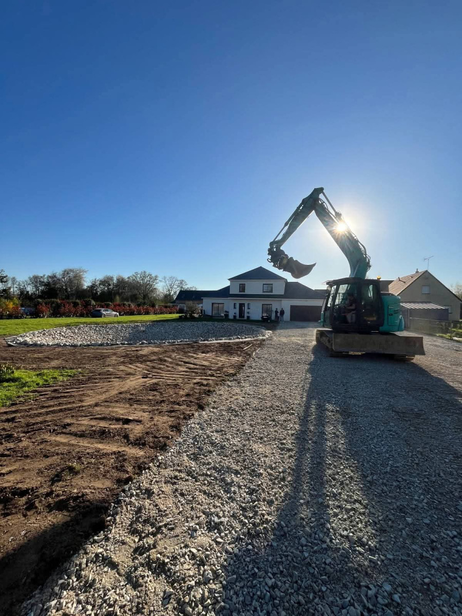 Agrandissement d'un parking entreprise, pose de bordures P1, finition enrobé. Chantier Bernay (27)