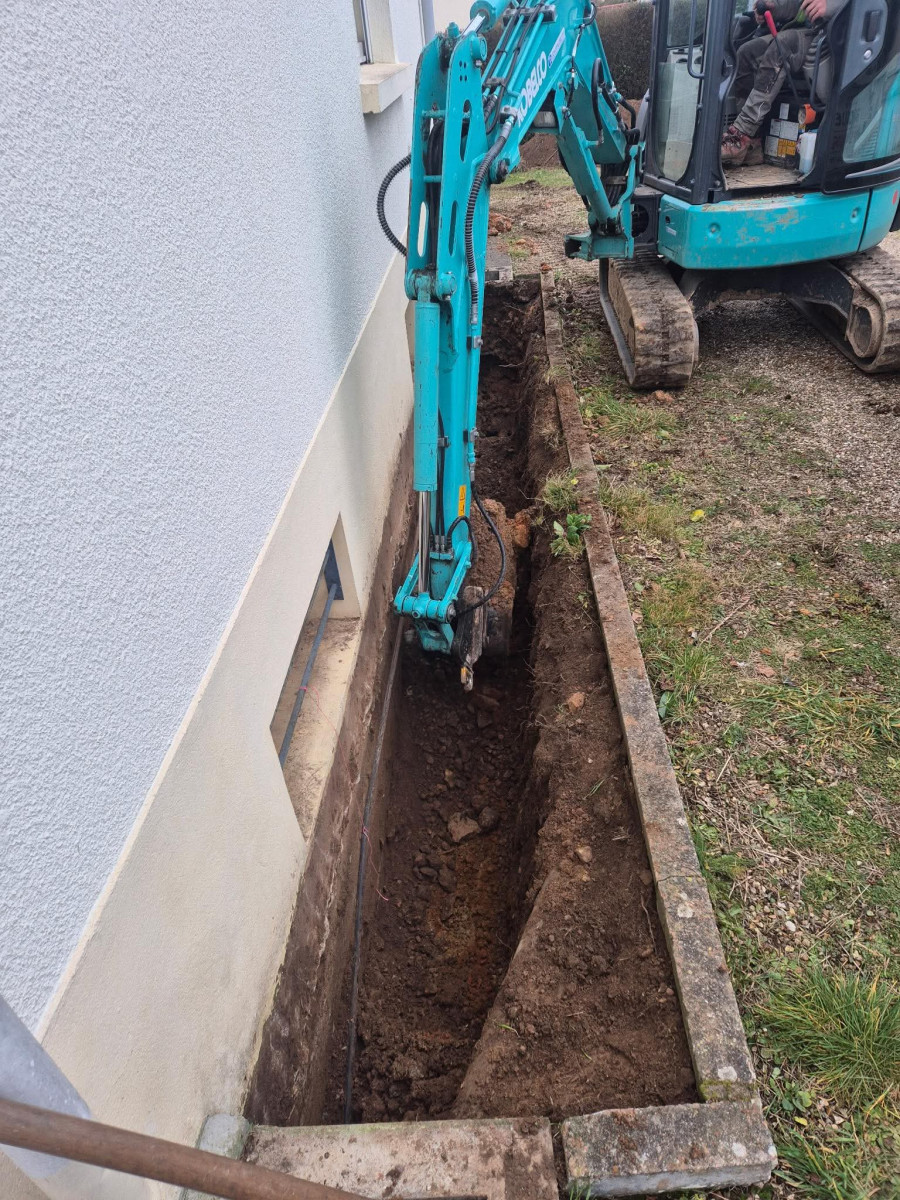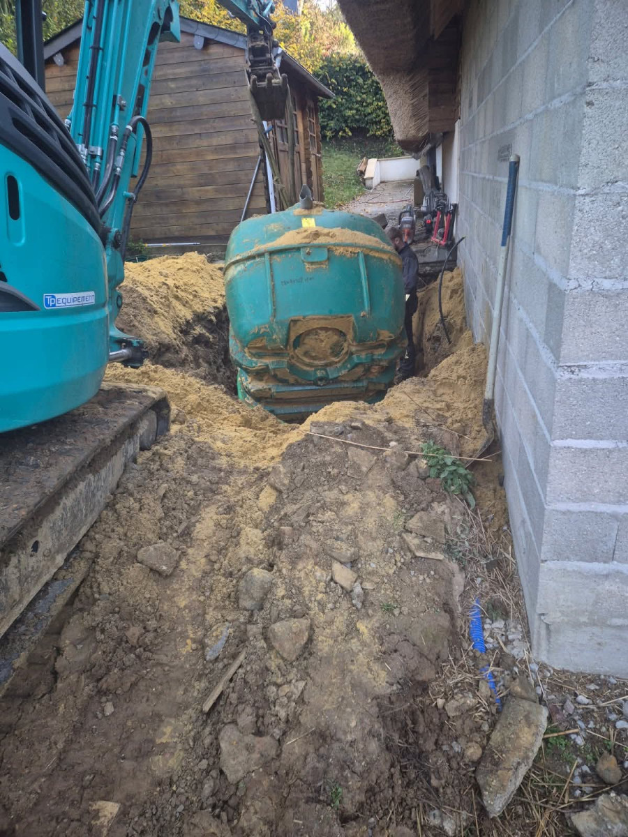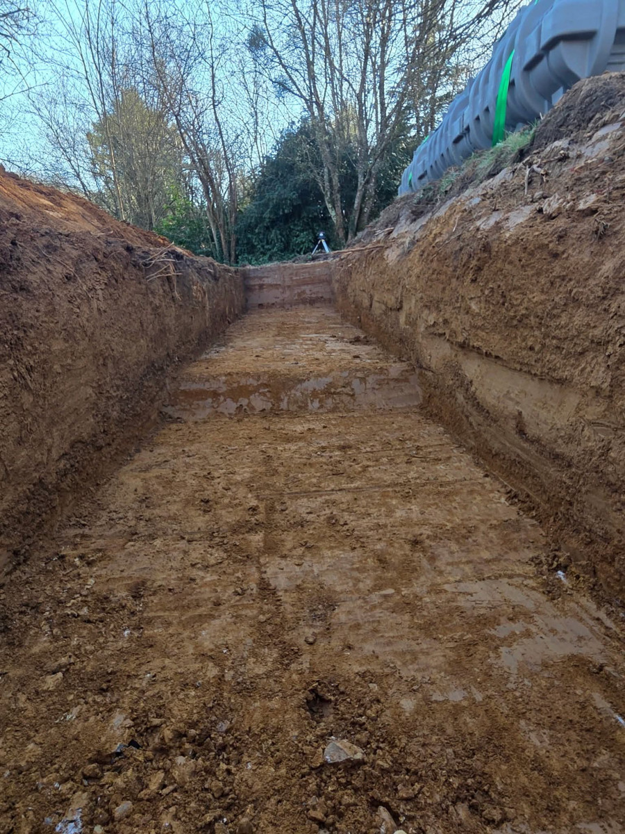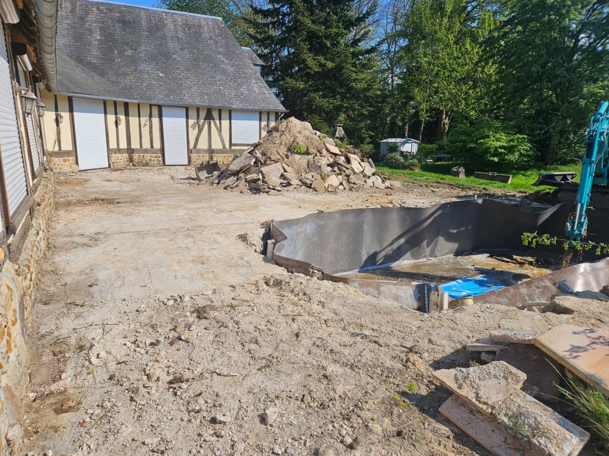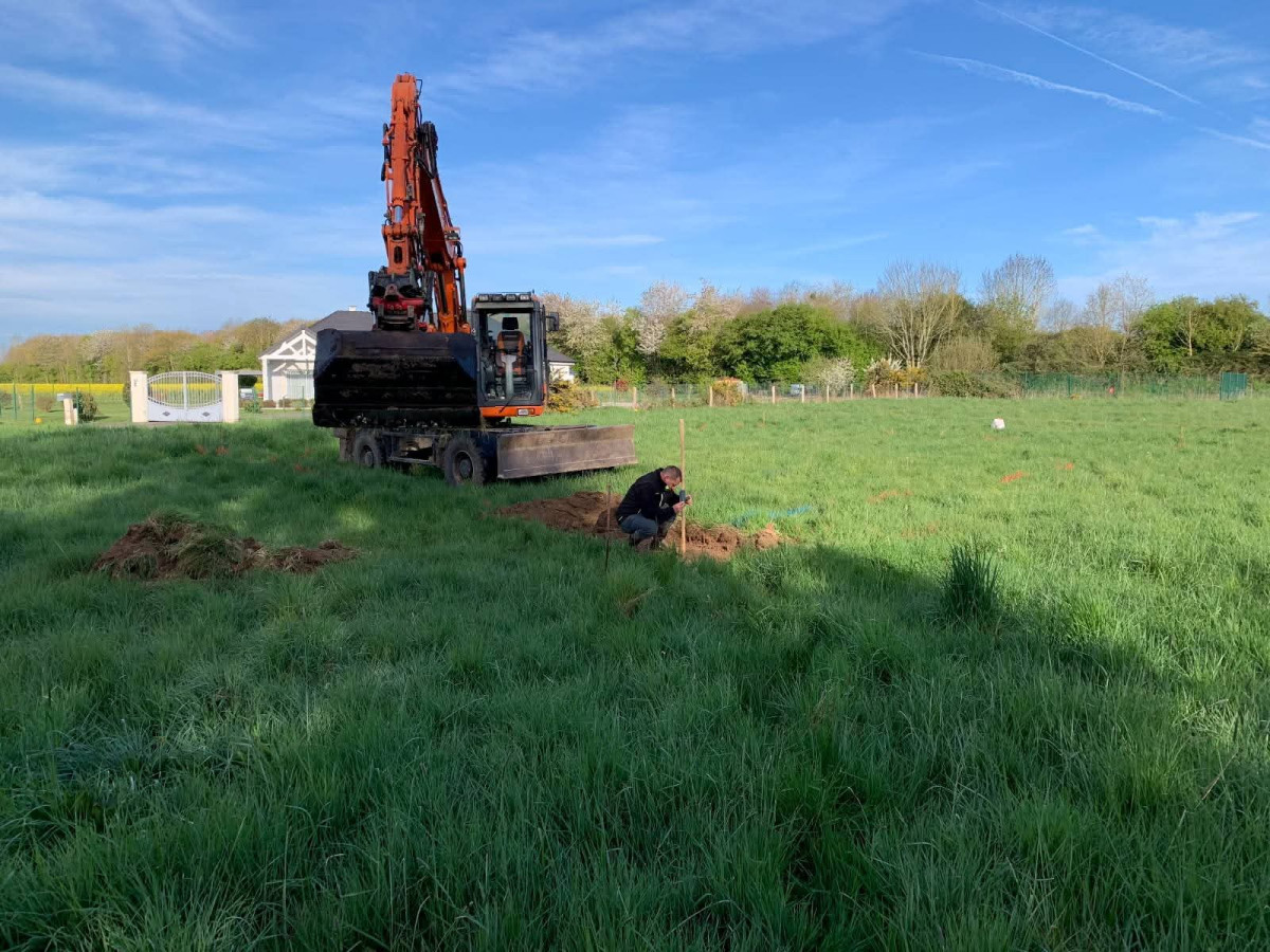Agrandissement d'un parking entreprise, pose de bordures P1, finition enrobé. Chantier Bernay (27)