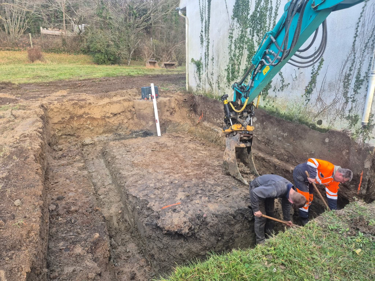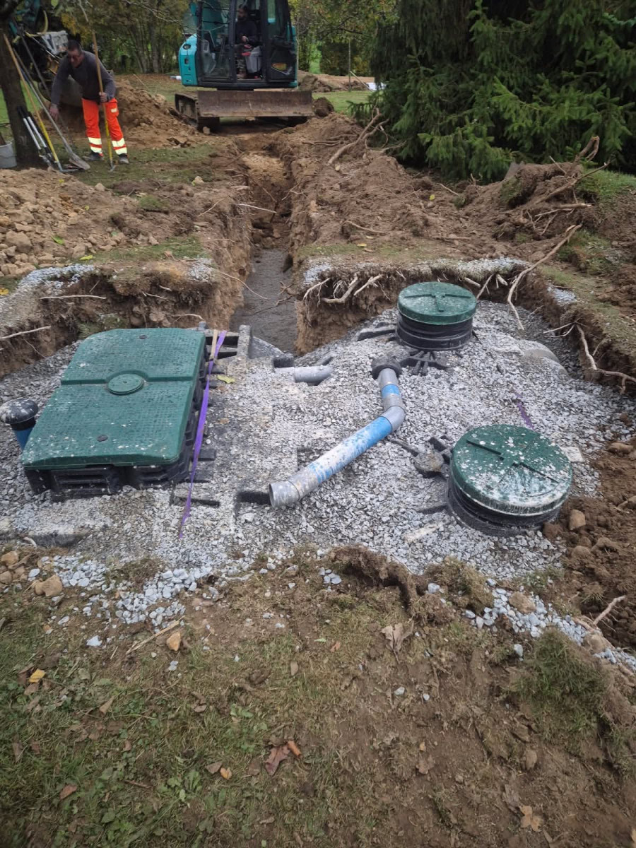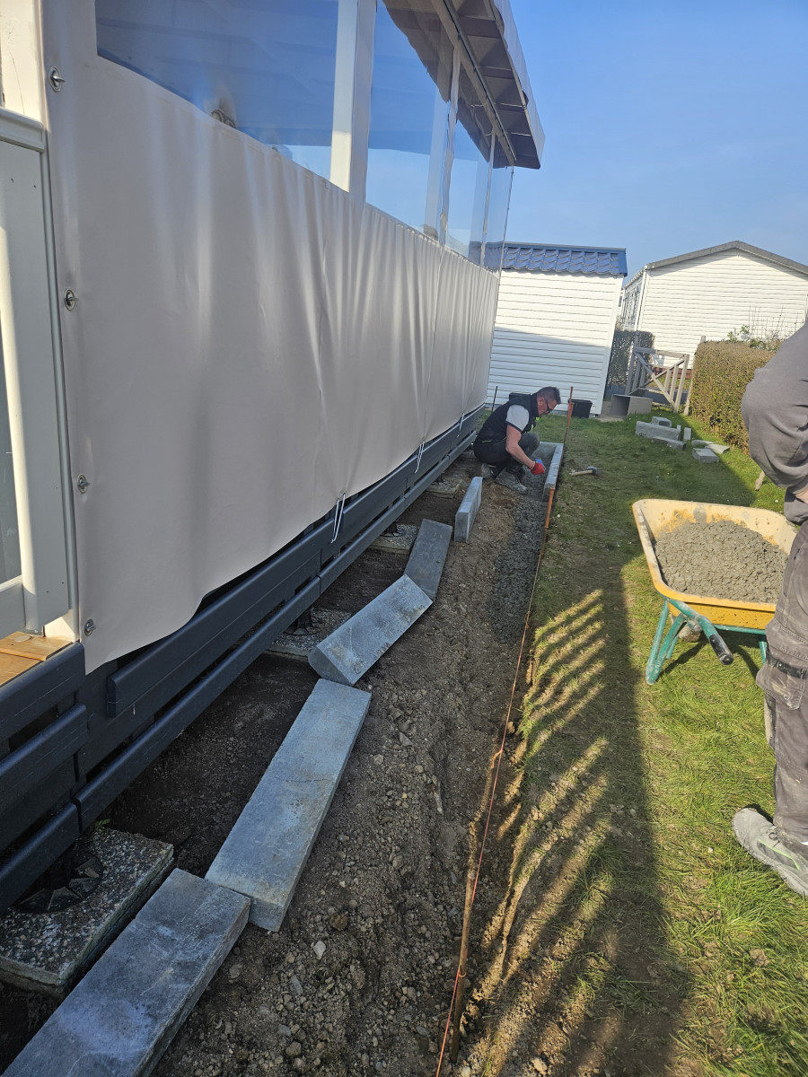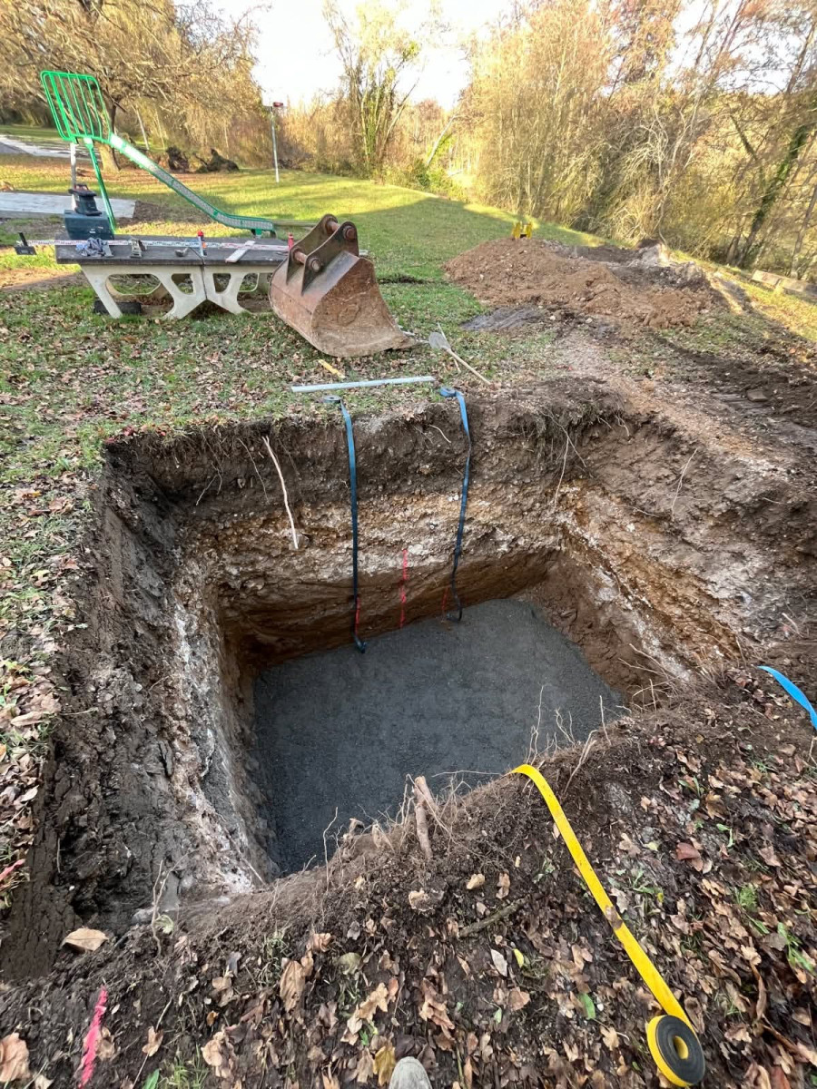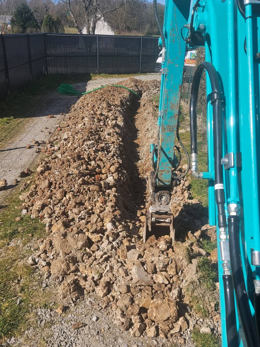 Agrandissement d'un parking entreprise, pose de bordures P1, finition enrobé. Chantier Bernay (27)